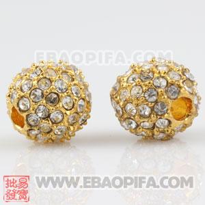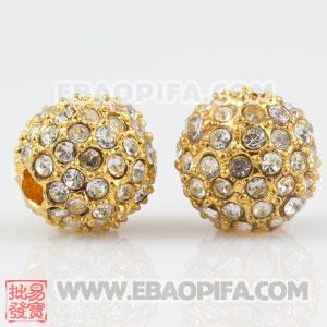 10mm Sambarla Style Pave Crystal Gold Plated Alloy Ball Beads - YH0002的详细说明: