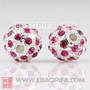 (Sambarla crystal beads) Wholesale 12mm Sambarla Style Pave pink Crystal Alloy Ball Beads, the hole is 2mm fit on any weave string bracelets, such as Sambarla style bracelets, Tresorbeaded jewelry etc.