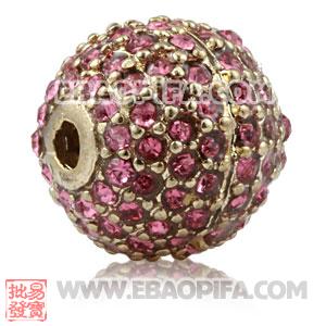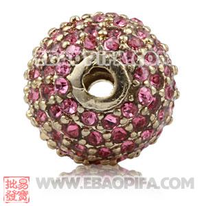 12mm Copper Disco Ball Bead Pave Pink Austrian Crystal Sambarla Style - YH0126的详细说明: