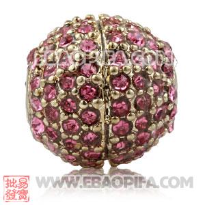 Wholesale 12mm Copper Disco Ball Bead Pave Pink Austrian Crystal Sambarla Style,these beads fit perfect on Sambarla style bracelets, Tresorbeaded Bracelets etc Weaving Jewelry,and and The hole is 2mm only fit 1mm Nylon Cord.