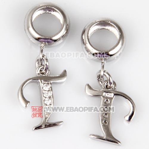 925纯银字母珠 吊坠英文字母珠 欧洲字母珠 大孔字母珠