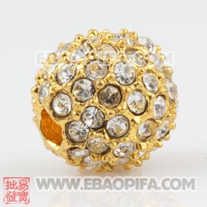 10mm Sambarla Style Pave Crystal Gold Plated Alloy Ball Beads - YH0002的详细说明: