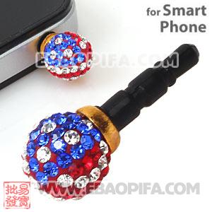 10mm Czech Crystal Flag Of USA Ball Earphone Jack Plug For iPhone Wholesale