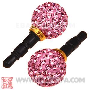 12mm Pink Pave Czech Crystal Ball Earphone Jack Plug For iPhone Wholesale - EA1026-20的详细说明: