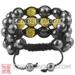 (Sambarla Inspired Bracelet) Wholesale 3 Row Yellow Red Crystal Cross Inspired String Bracelet With Faceted Hematite Beads, With an adjustable pull closure that fits most sizes, it is the hottest Tresorbeaded bracelet for 2011.
