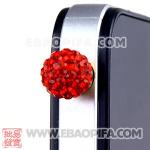 8mm Red Czech Crystal Ball Cute Plugy Earphone Jack Accessory