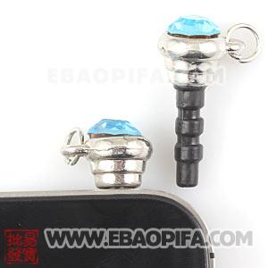 Wholesale Earphone Jack Plug Accessory With Cyan Crystal For Smart Phone