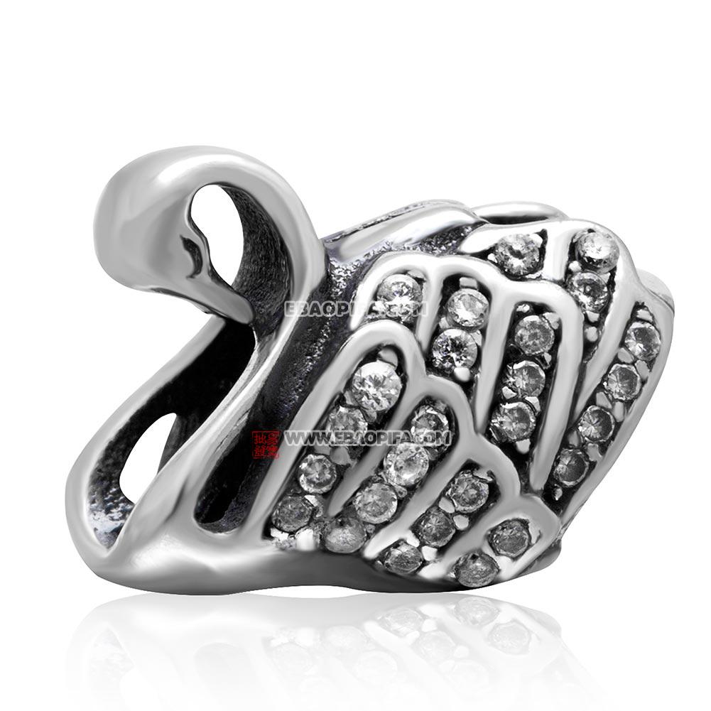 白色锆石天鹅925银珠