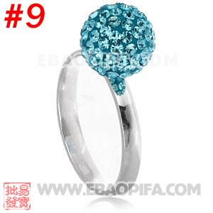 (淡蓝色水钻球925纯银戒指) 厂家进口捷克水钻球925纯银戒指 欧美大牌原单尾货戒指