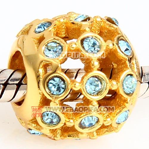 海蓝奥钻三排镀18K真金钻珠925纯银珠子 义乌市星歌饰品厂工厂直销 质量稳定 库存充足 外贸电商 ebay开店 速卖通开店 Amazon亚马逊开店 优质供应商