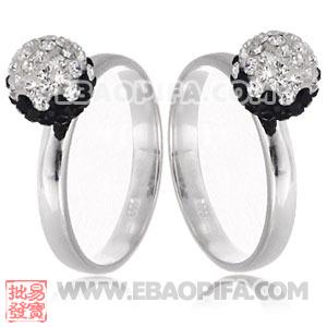 (黑白水钻球925纯银戒指) 厂家进口捷克水钻球925纯银戒指 欧美大牌原单尾货戒指
