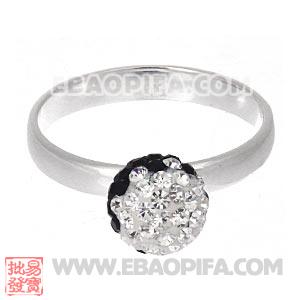 (黑白水钻球925纯银戒指) 厂家进口捷克水钻球925纯银戒指 欧美大牌原单尾货戒指