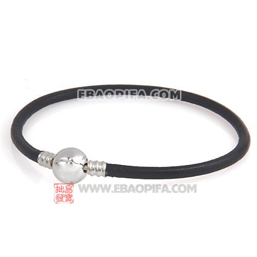 黑色20cm牛皮绳圆形925纯银扣头手链 义乌市星歌饰品厂工厂直销 质量稳定 库存充足 外贸电商 ebay开店 速卖通开店 Amazon亚马逊开店 优质供应商
