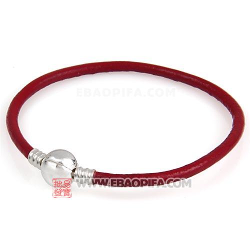 红色21cm牛皮绳圆形925纯银扣头手链 义乌市星歌饰品厂工厂直销 质量稳定 库存充足 外贸电商 ebay开店 速卖通开店 Amazon亚马逊开店 优质供应商