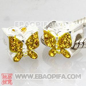 (蝴蝶水钻银珠) 批发进口奥地利水钻镶钻 潘多拉风格 925纯银珠子 适用潘多拉风格珠宝 手链 项链 ebay热销爆款 速卖通爆款 亚马逊爆款 外贸电商的供应商 工厂设计生产直销 义乌市星歌饰品厂