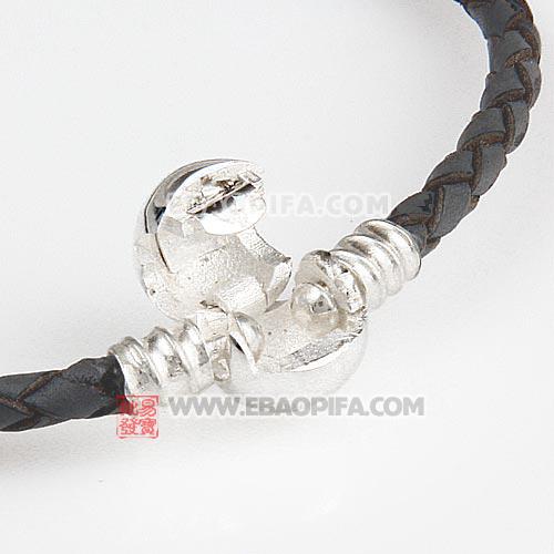 灰色21cm进口皮绳圆形925纯银扣头手链 义乌市星歌饰品厂工厂直销 质量稳定 库存充足 外贸电商 ebay开店 速卖通开店 Amazon亚马逊开店 优质供应商