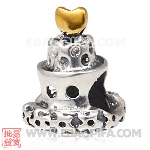 结婚蛋糕珠子 潘多拉风格真金18K电镀表面 925纯银珠子 欧洲珠 大孔珠