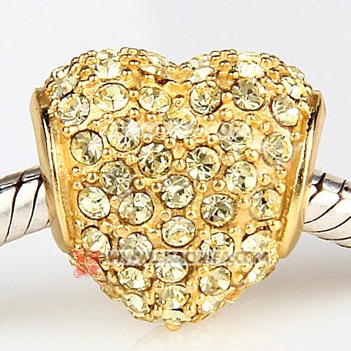 厂家直销批发进口奥地利淡黄水钻镶钻 潘多拉风格 18K真金电镀心形925纯银珠子 适用潘多拉风格珠宝 手链 项链 ebay热销爆款 速卖通爆款 亚马逊爆款 外贸电商的供应商 工厂设计生产直销 义乌市星歌饰品厂