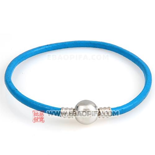 蓝色22cm牛皮绳圆形925纯银扣头手链 义乌市星歌饰品厂工厂直销 质量稳定 库存充足 外贸电商 ebay开店 速卖通开店 Amazon亚马逊开店 优质供应商