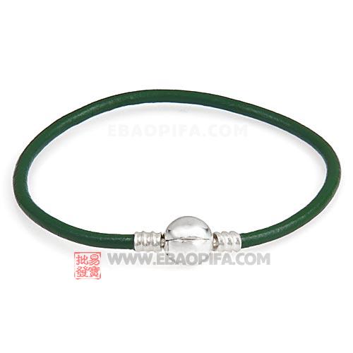 绿色19cm牛皮绳圆形925纯银扣头手链 义乌市星歌饰品厂工厂直销 质量稳定 库存充足 外贸电商 ebay开店 速卖通开店 Amazon亚马逊开店 优质供应商