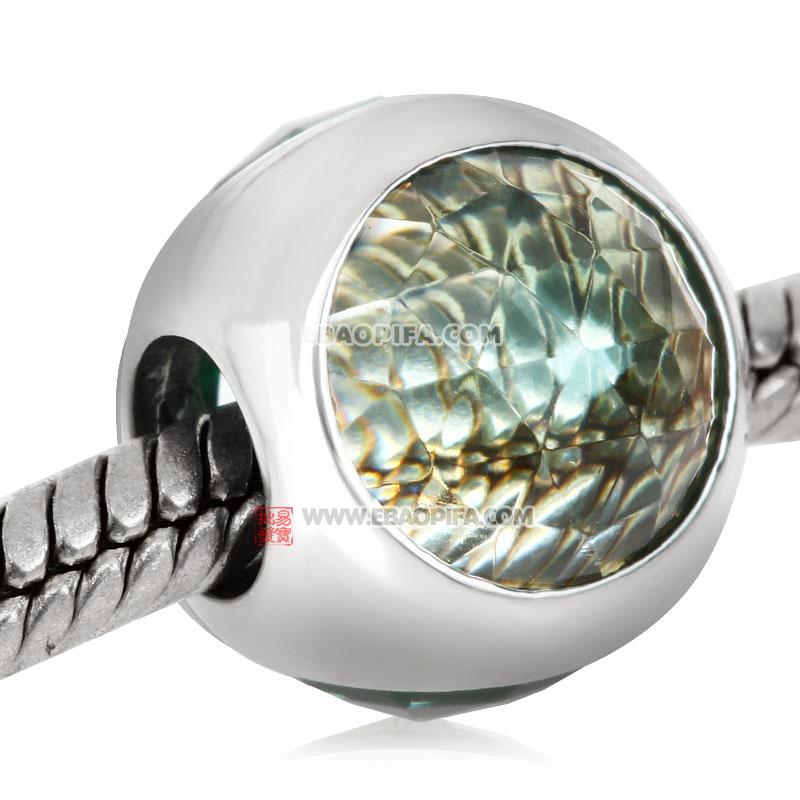 三面冰晶绿水晶925银珠