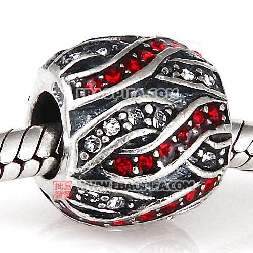 丝带水钻圆珠 批发进口奥地利水钻镶钻 潘多拉风格 925纯银珠子