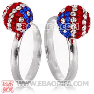(镶混水钻球925纯银戒指) 厂家进口捷克水钻球925纯银戒指 欧美大牌原单尾货戒指