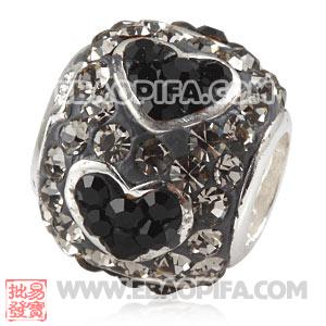 心形水钻圆珠子 批发进口奥地利水钻镶钻 潘多拉风格 925纯银珠子
