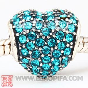 心形水钻珠子 批发进口奥地利水钻镶钻 潘多拉风格 925纯银珠子