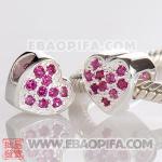 (心形镶锆石珠子) 镶锆石925纯银珠子 潘多拉风格欧洲珠 AAA级别锆石 外贸大牌珠子 外贸尾货珠子