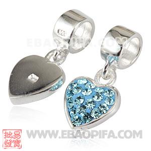心形镶钻银坠子 欧洲珠吊坠 925纯银Charm吊坠