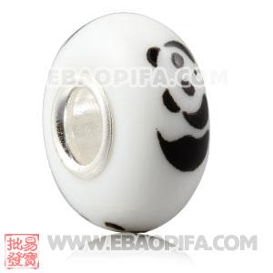 批发熊猫贴画珠子 925纯银琉璃珠 琉璃珠厂家