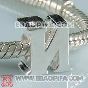 925纯银字母珠 镀银英文字母珠 欧洲字母珠 大孔字母珠 - SS0485-N的详细说明: