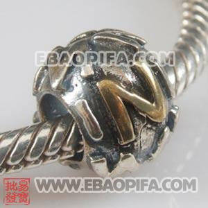 925纯银字母珠 双色英文字母珠 欧洲字母珠 大孔字母珠 - SS0383-N的详细说明: