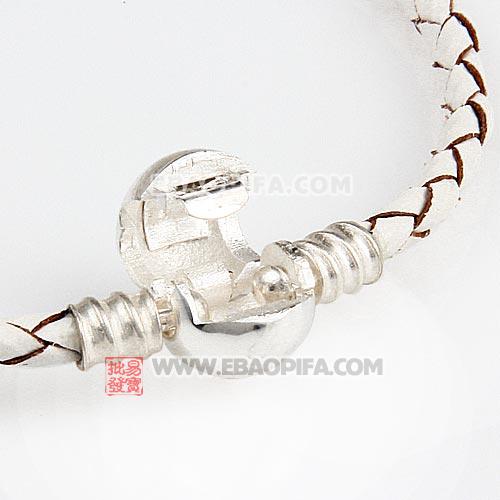珍珠白21cm进口皮绳圆形925纯银扣头手链 义乌市星歌饰品厂工厂直销 质量稳定 库存充足 外贸电商 ebay开店 速卖通开店 Amazon亚马逊开店 优质供应商